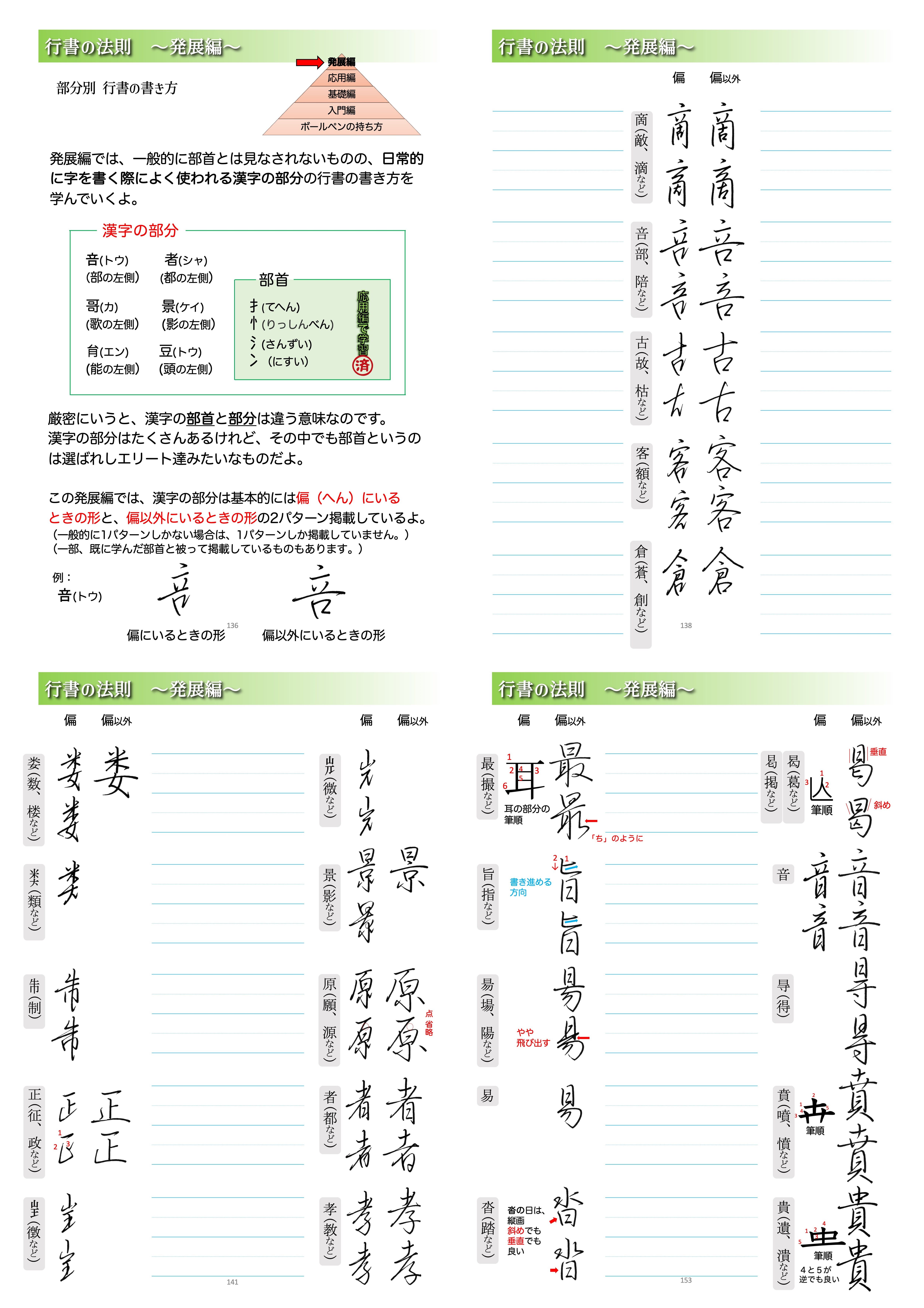 なので、発展編で漢字の部分ごとの崩し方を学ぶというわけです。