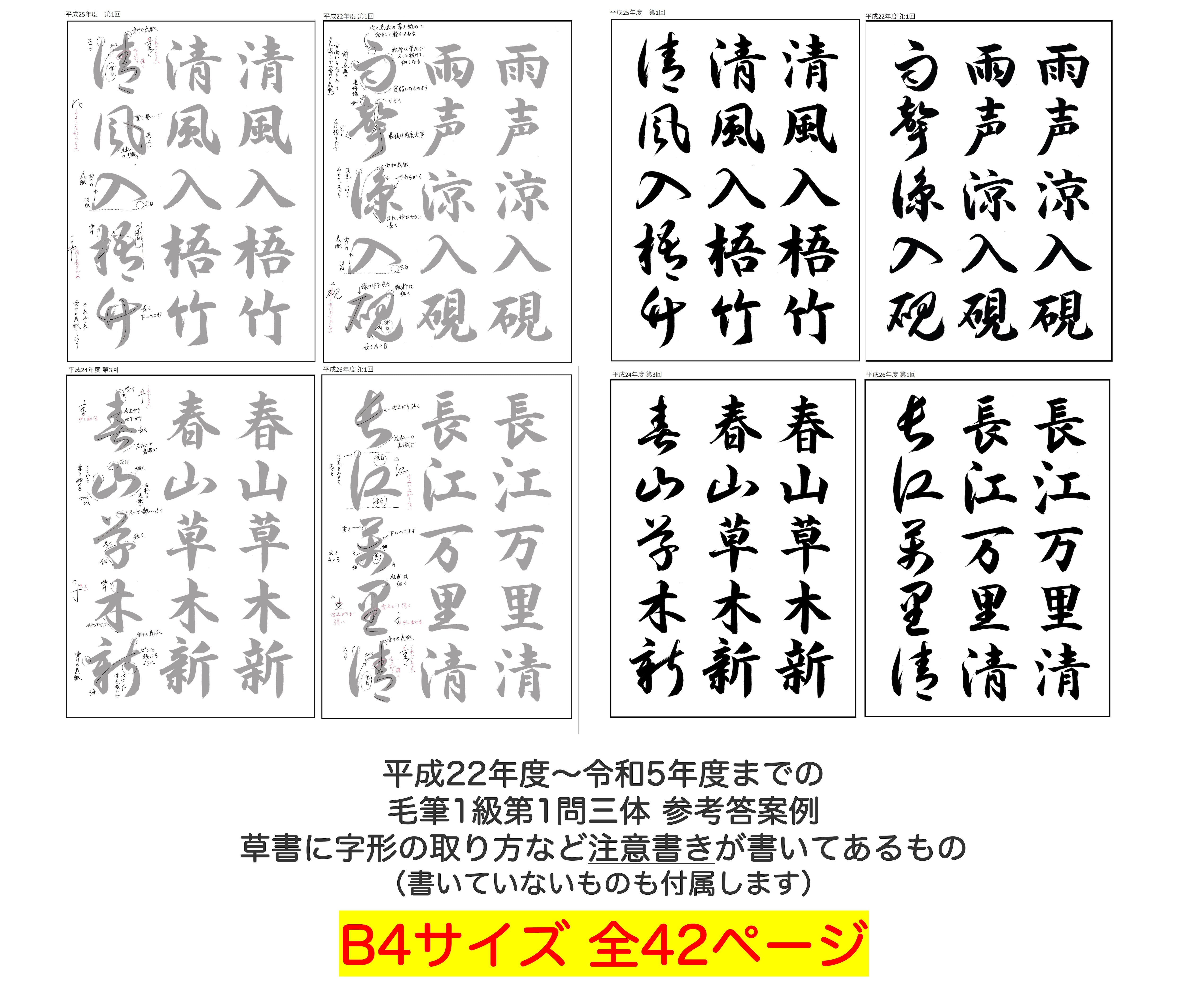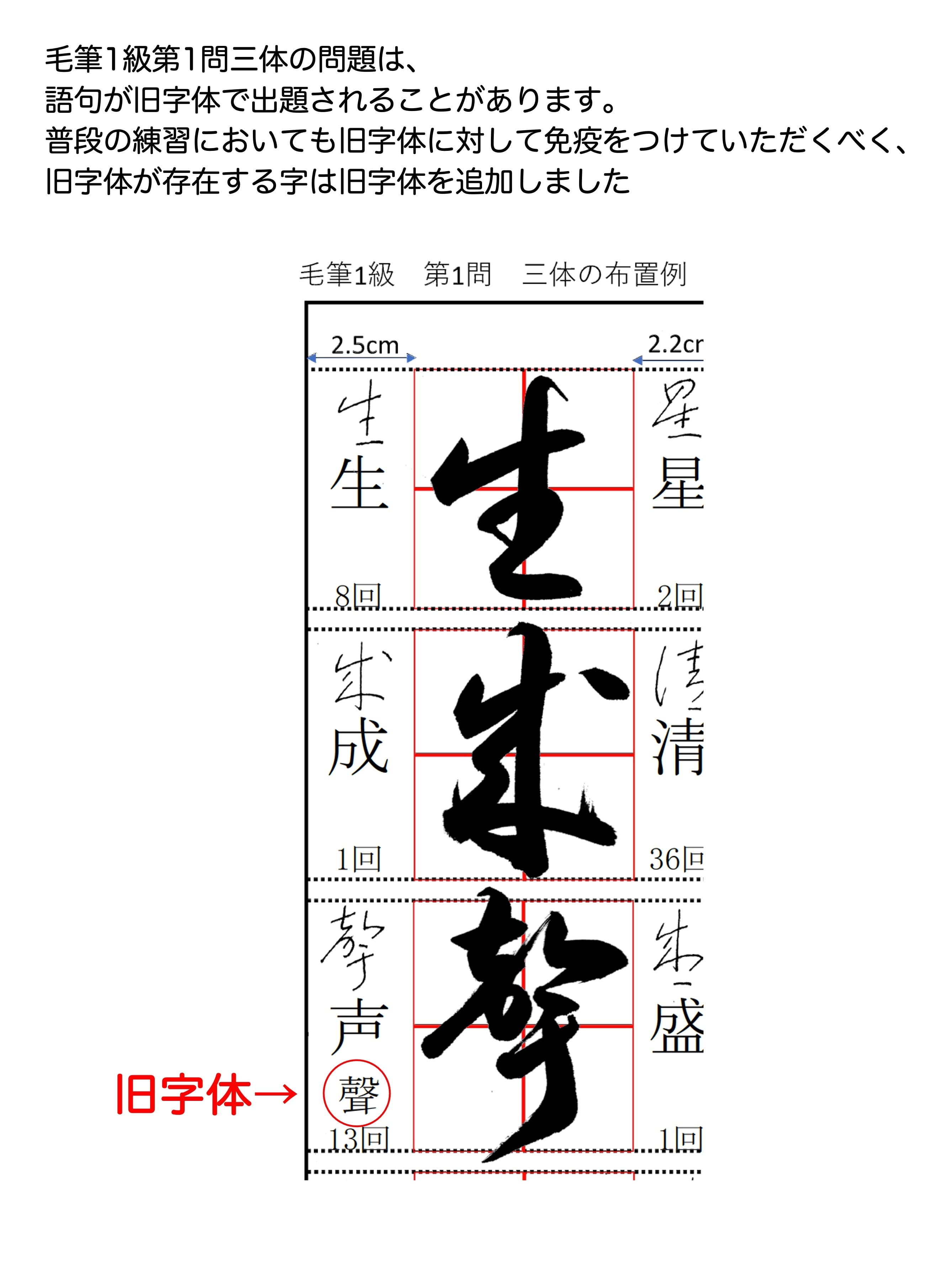 という方にぜひオススメで、毛筆1級第1問はこのお手本集で練習していただければしっかり対策できます。